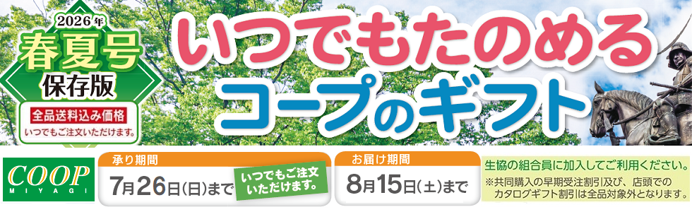 - いつでもたのめるコープのギフト2026年春夏号の取り扱いを開始しました。お祝いやお返しなど、あらゆるシーンでご活用ください。