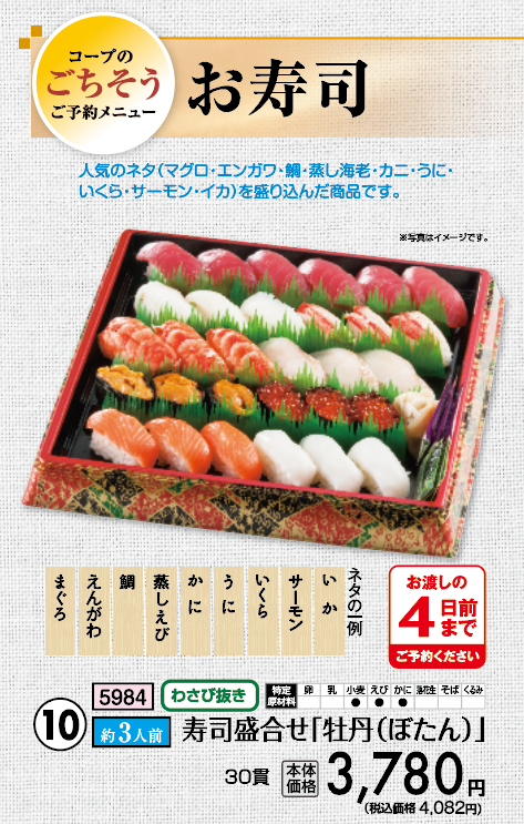 寿司盛合せ「牡丹(ぼたん)」 約3人前