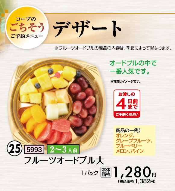 ◎フルーツオードブルの商品の内容は、季節によって異なります。
