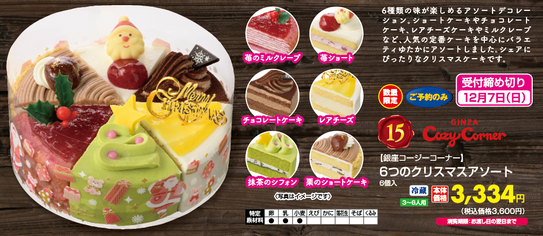 ◎ご予約のみ ◎限定数量になり次第、予約終了とさせて頂きます ◎6個入 ◎3~6人用 ◎冷蔵 ◎消費期限: お渡し日の翌日まで ◎ご予約締め切り日: 12月7日(日) ◎商品お渡し期間: 12月23日(火)~12月25日(木)