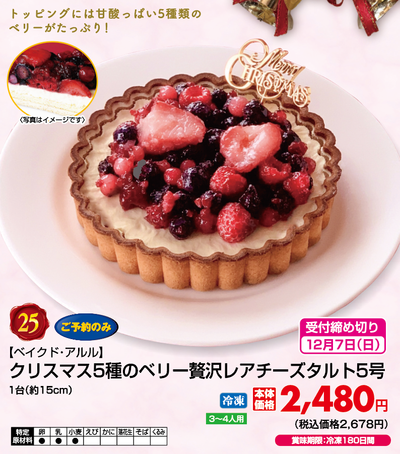 ◎ご予約のみ ◎1台(約15cm) ◎3~4人用 ◎冷凍 ◎賞味期限: 冷凍180日間 ◎ご予約締め切り日: 12月7日(日) ◎商品お渡し期間: 12月23日(火)~12月25日(木)