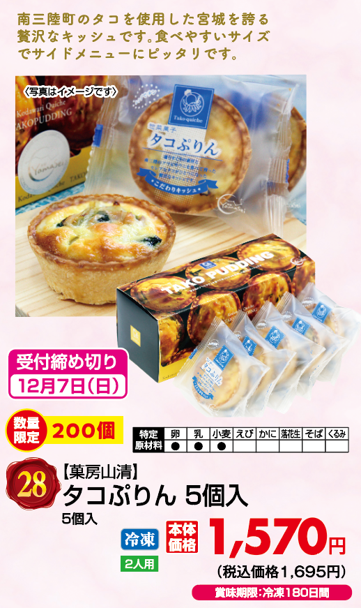 ◎数量限定200個。限定数量になり次第、予約終了とさせて頂きます ◎5個入 ◎2人用 ◎冷凍 ◎賞味期限: 冷凍180日間 ◎ご予約締め切り日: 12月7日(火) ◎商品お渡し期間: 12月23日(火)~12月25日(木)