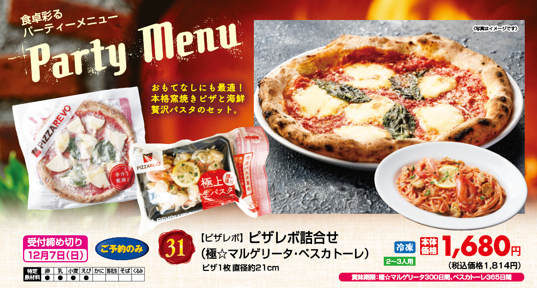 ◎ご予約のみ ◎ピザ1枚 直径約21cm ◎2~3人用 ◎冷凍 ◎賞味期限:極☆マルゲリータ300日間、ペスカトーレ365日間 ◎ご予約締め切り日: 12月7日(日) ◎商品お渡し期間: 12月23日(火)~12月25日(木)