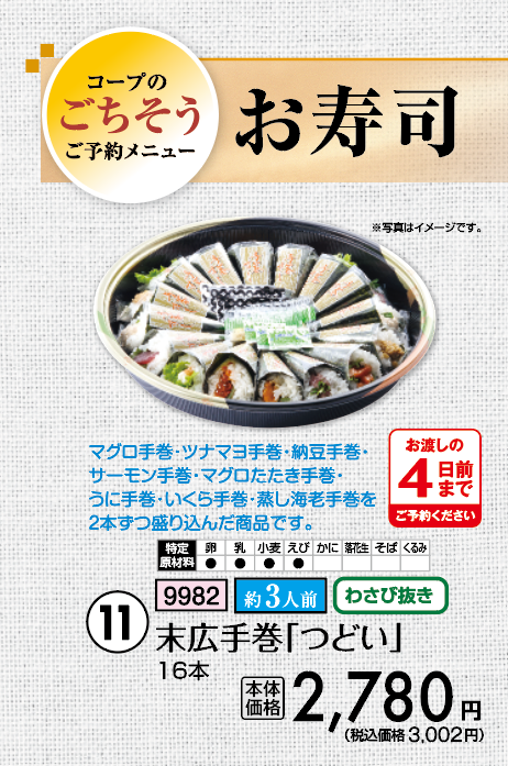 ◎市場休みや季節、入荷状況などによりネタの内容が変更、異なる場合があります。